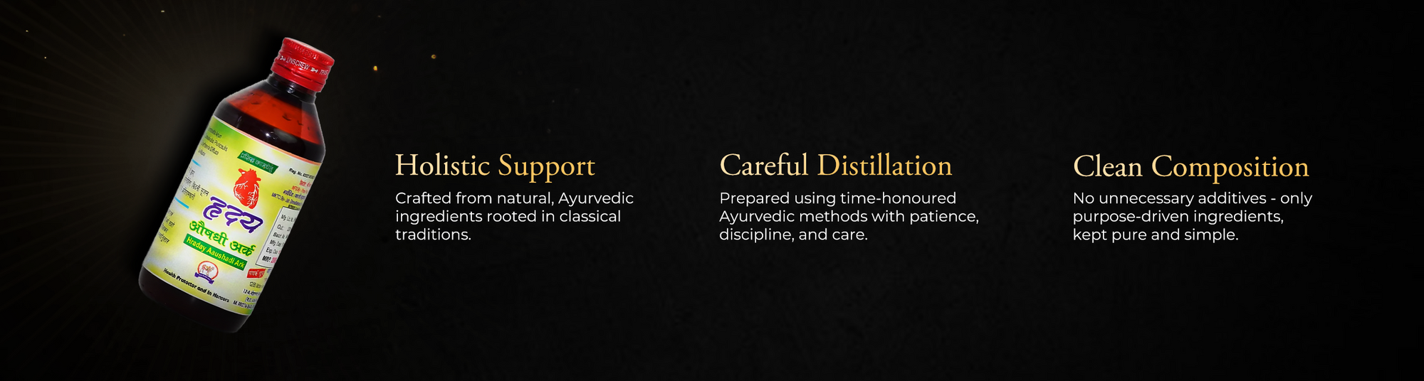 हृदय औषधि अर्क एक आयुर्वेदिक हर्बल औषधि है जिसे आमतौर पर हृदय, रक्त संचार और समग्र हृदय संबंधी स्वास्थ्य पर केंद्रित दिनचर्या में शामिल किया जाता है।