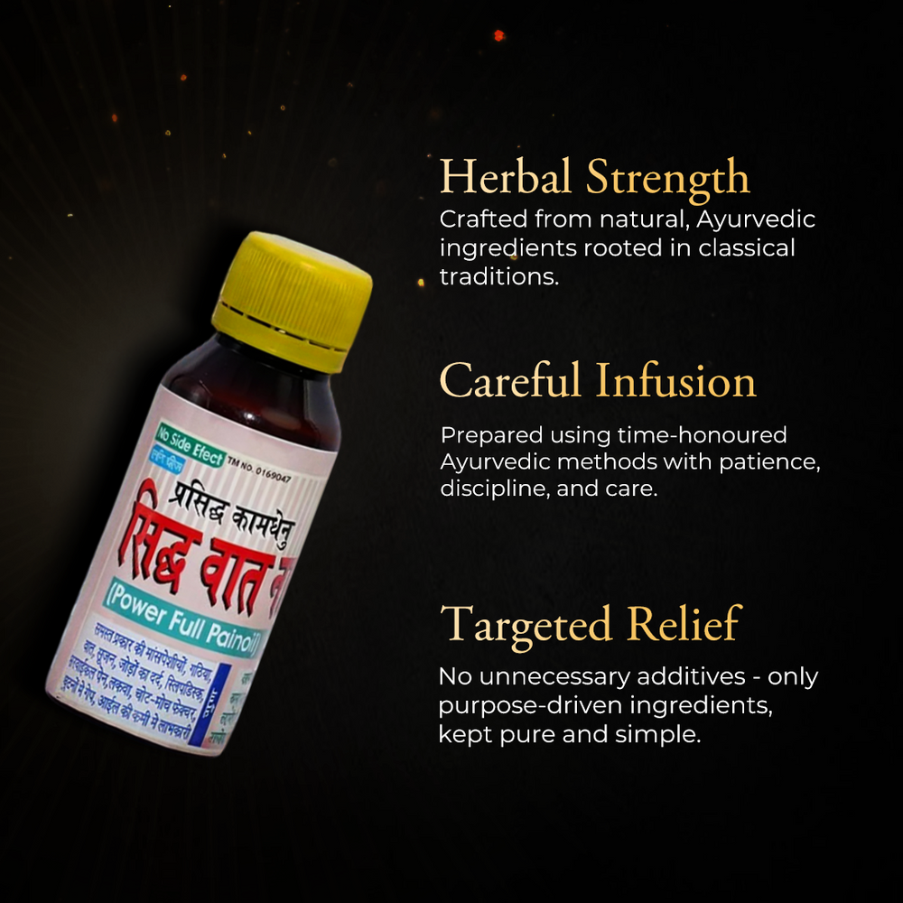 इस आयुर्वेदिक हर्बल तेल का उपयोग आमतौर पर मालिश के लिए किया जाता है ताकि जोड़ों को आराम मिले, मांसपेशियों को शिथिल किया जा सके और समग्र गतिशीलता में सुधार हो, खासकर जब अकड़न या असुविधा हो।