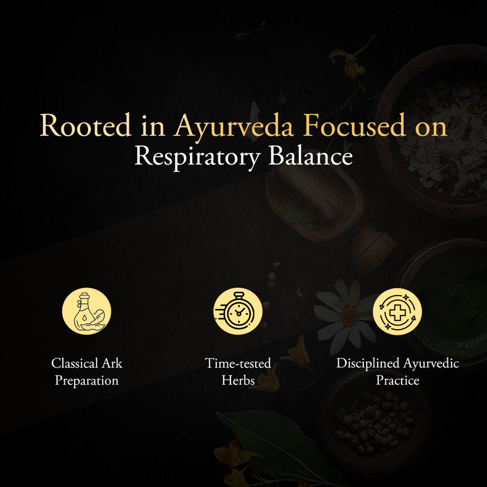 A classical Ayurvedic herbal ark formulated to support lung health, ease breathing, and maintain respiratory balance through traditional Ayurvedic principles.