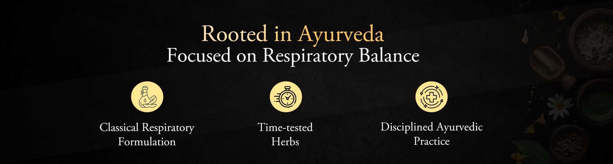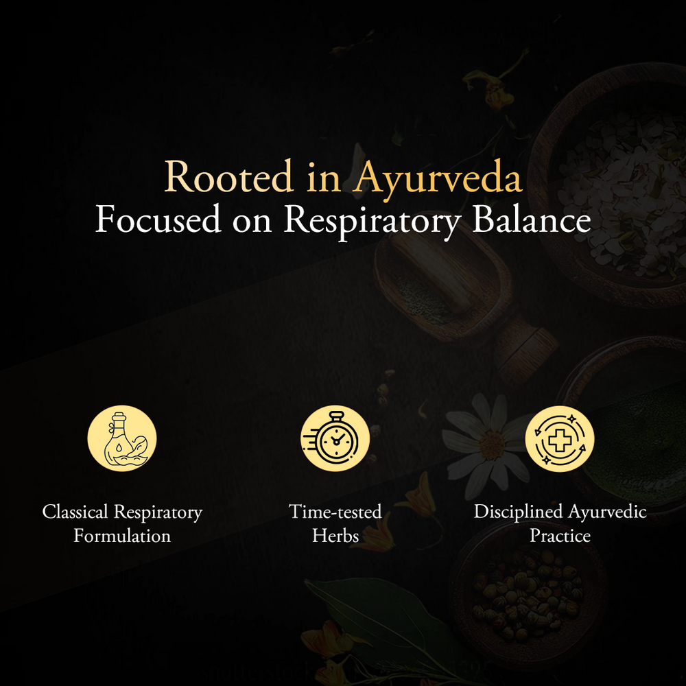 A classical Ayurvedic herbal powder formulated to support respiratory health, ease cough, asthma-related discomfort, and sinus imbalance through traditional Ayurvedic principles.