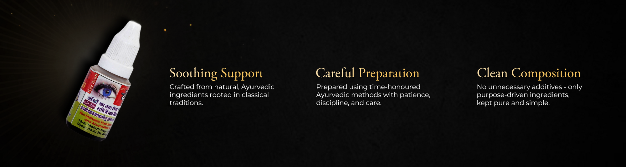 Our formulation follows classical Ayurvedic eye care principles to ensure safety and effectiveness.