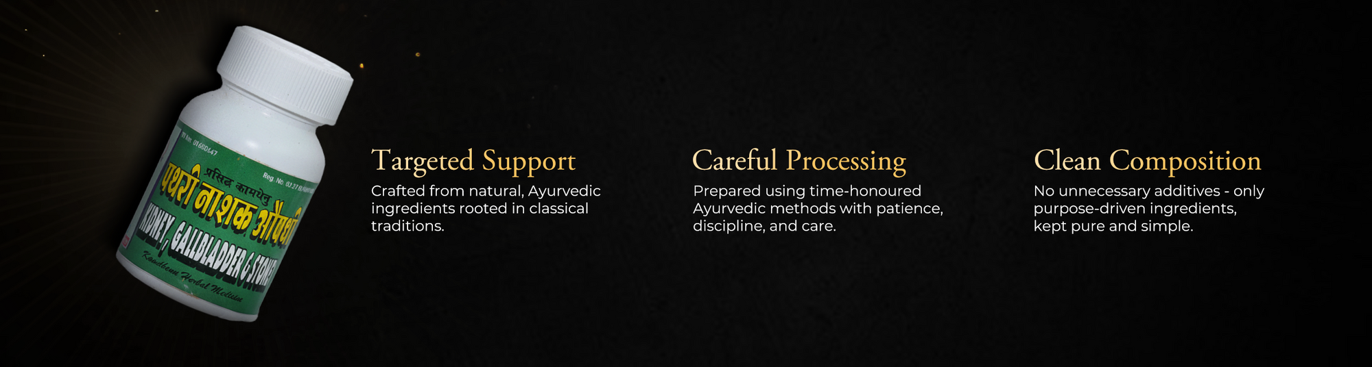 A classical Ayurvedic herbal powder formulated to support kidney health, urinary system balance, and comfort related to stone formation through traditional Ayurvedic principles.